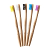 Une brosse à dents fabriquée à partir de bambou biologique, et possédant de petits poils en nylon.