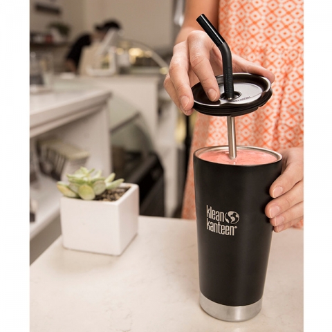 Les pailles de Klean Kanteen sont parfaitement ajustées au couvercle de thermos, lequel se place sur le gobelet de thermos.