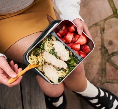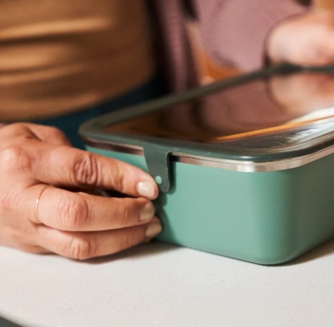 Daarnaast voelt het goed om de Grote Maaltijdbox te gebruiken (en steeds opnieuw te gebruiken). Deze duurzame voedselbox is vervaardigd uit gecertificeerd 90% post-consumer gerecycleerd 18/8 roestvrij staal en wordt gedekt door onze Strong-As-Steel™ garantie. De box is roest-, vlek- en geurbestendig, en afgewerkt met een duurzame Klean Coat®-coating die niet barst of afschilfert. Je kunt hem gerust in de oven zetten om restjes op te warmen, of in de vaatwasser doen voor een eenvoudige schoonmaakbeurt.