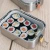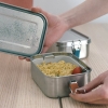 De brooddoos heeft een groot compartiment met daarin een uitneembare silicone basis. Deze basis kan in de diepvries, microgolfoven en oven en is gemakkelijk uit de brooddoos te halen dankzij de handige clips.