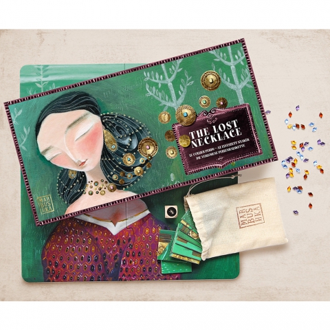 Er was eens een prachtige prinses die op een dag door een heks betoverd werd in haar slaap. De heks nam de magische parelketting en strooide de 40 parels in de tuin. Pas als alle kleine parels uit het dikke gras zouden worden gevonden zou de prinses terug wakker worden. Elke speler gooit de dobbelsteen en neemt de parel met het corresponderende kleur. De parels worden rond de nek van de prinses gelegd volgens een zelf gekozen sjabloon (in handleiding). Wanneer je een zandloper gooit moet er een puzzelstuk gelegd worden. Let op dat alle parels verzameld zijn voor de zandloper compleet is!