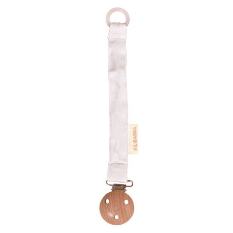 Fopspeenkoord gemaakt van GOTS gecertificeerd biologisch katoen met nikkelvrije metalen clip ingewerkt in hout.