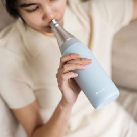 De drinkfles houdt dranken tot 10u op temperatuur (18u met ijsblokjes) en is enkel geschikt voor koude dranken.