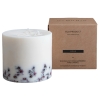 De kaars is gemaakt van 100% sojawas en heeft 3 katoenen wieken. De kaars brandt een tunnel zodat de rand rechtop blijft en u mooi de blaadjes erdoor kan zien.