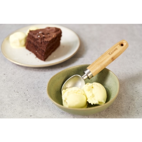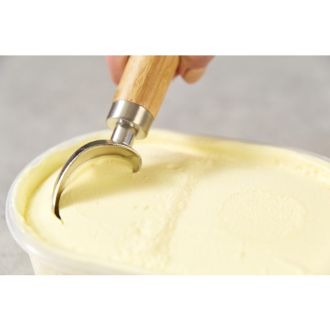 Deze RVS ijslepel glijdt zelfs door het hardste ijs. Dankzij de afgeronde kop schep je elke keer een perfect bolletje ijs. Ook bij uitstek geschikt bij het serveren van puree. De ijslepel heeft een aangenaam bamboe handvat. Reinigen: met de hand afwassen in een warm sopje, afspoelen en daarna goed afdrogen