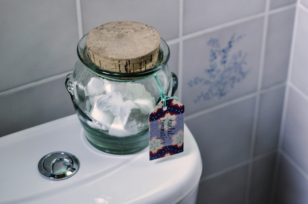 Een bokaal toiletbommetjes staat niet alleen mooi op je toilet, het zijn ook effectieve reinigers. De ideale vervangers van die vieze chemische wc-blokjes? Jazeker! Natuurlijk moet je nog altijd (ongeveer) wekelijks je toilet schoonmaken (zoals bijvoorbeeld hierboven beschreven), maar met een toiletbommetje kan je je toilet wel tussentijds opfrissen.