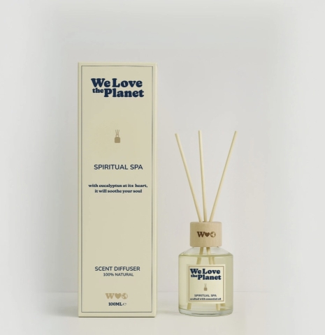 We Love The Planet Spiritual Spa: "Met eucalyptus in het hart zal het je ziel kalmeren." Laat je meevoeren naar een kalmerende wereld waar energie en ontspanning hand in hand gaan. Spiritual Spa is meer dan alleen een geur, het is een ervaring. Een ritueel. Een diepe ademhaling midden op een drukke dag. De geur is werkelijk een verademing letterlijk. Eucalyptus begroet je direct met zijn verkwikkende, pure karakter. De geur roept de warmte en puurheid op van oosterse hammamrituelen; reinigend, troostend en revitaliserend. Of het nu in je badkamer, woonkamer, slaapkamer of kantoor is, deze diffuser brengt een vleugje wellness, waar je hem ook plaatst.
