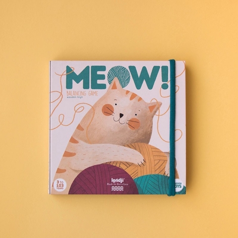 Een evenwichtsspel waarbij de speler die het beste de strengen wol op de kat weet te balanceren, de winnaar is. Een houten en lokaal geproduceerd speelgoed, gemaakt in Barcelona.