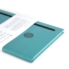 Het notitieboek telt 80 gelinieerde pagina's en heeft een harde kaft. Het notitieboek kan u sluiten met een elastiek.