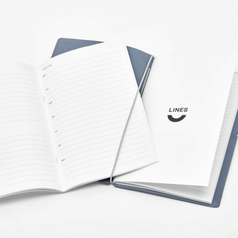 Het notitieboek telt 2 delen (my plan + lines) en heeft een elastische sluiting.