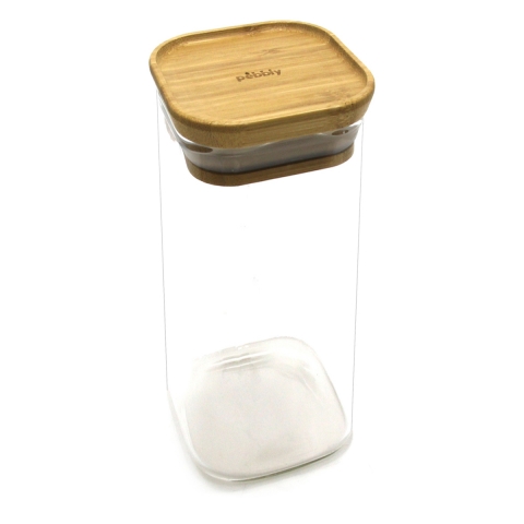 Opbergpot gemaakt van borosilicaat glas met bamboe deksel. Rond het deksel zit een silicone ring zodat de pot hermetisch afgesloten kan worden.
