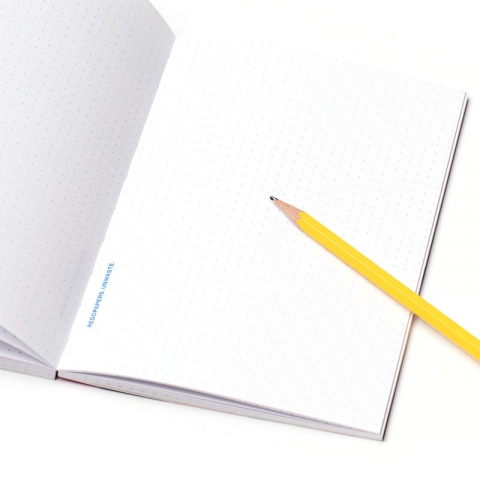 Het notitieboek telt 144 gestippelde (bullet) pagina's met Koptische binding.