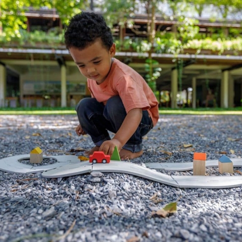 Het speelgoed van Plan Toys is gemaakt van gifvrije natuurlijke materialen zoals biologisch rubberhout, zaagmeel, ... en wordt geproduceerd met een zo minimaal mogelijke impact op het milieu.