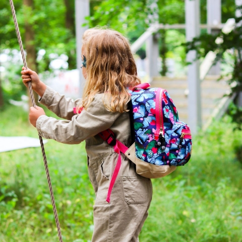 Het rugzakje heeft één hoofdvak. Daarin bevindt zich een klein opbergzakje met naamlabel, het zakje sluit met een rits. Ook is er een elastische flap waar er perfect een drinkfles in past.