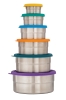 Drie in elkaar passende opbergdozen (100% roestvrij staal) met deksel (silicone).