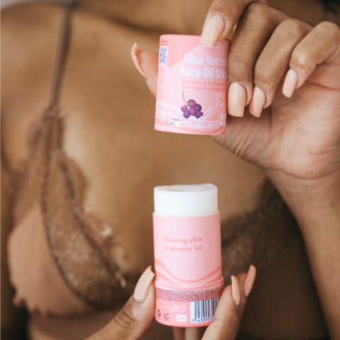 Glow retreat gezichtsolie bar met natuurlijke, pH-neutrale ingrediënten om het gezicht te hydrateren zonder de poriën te verstoppen.