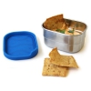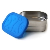 Lunchdoosje (100% roestvrij staal) met blauw deksel (silicone). Het deksel is erg wendbaar en daardoor gemakkelijk open te krijgen.