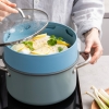 Plaats de Steamy op je favoriete kookpot van 24 cm, vul de pot voor de helft met water en je bent klaar om te stomen. Groenten, vis, dim sum, rijstgerechten… de mogelijkheden zijn eindeloos. En wil je een volledige maaltijd in één keer klaarmaken? Stapel gewoon meerdere Steamy’s op elkaar en laat de magie gebeuren!