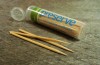 Prikkers/Tandenstokers gemaakt van FSC-berkenhout in een handige verpakking gemaakt van gerecycyleerd plastic.