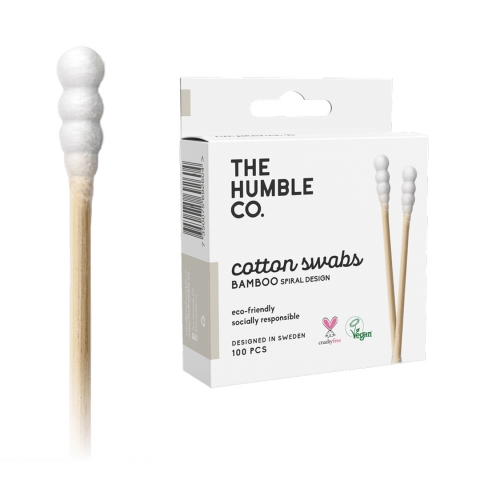 100 wattenstaafjes gemaakt van bamboe (stokje) en biologisch katoen (spiraalvormige uiteinden).